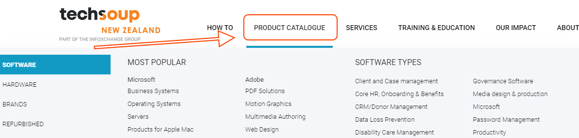 2. Go to the Product Catalogue link in the menu and use the filters to find the products you need: